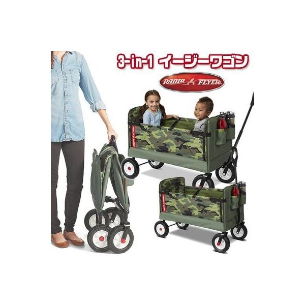 ラジオフライヤー 3-in-1 イージー フォールド ワゴン カモフラ柄 2人乗り オフロードタイヤ 大容量 キャリーワゴン 頑丈 キャリー ベンチ 公園 ピクニック キャンプ アウトドアレジャー 乗用玩具 カート 台車 Radio Flyer 3-in-1 EZ Fold Wagon